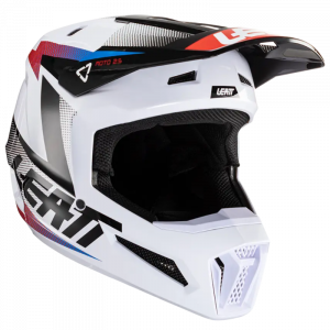 Leatt Kit Moto 9.5 Carbon V23 White motocross helmet + Velocity 6.5 Iriz White Red goggles