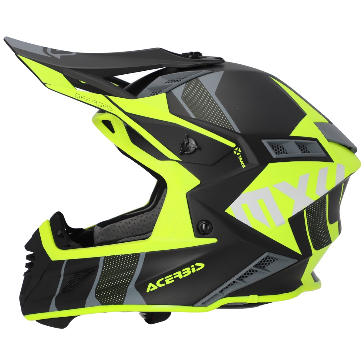 The Acerbis X-Track is a motocross helmet made from fiberglass.