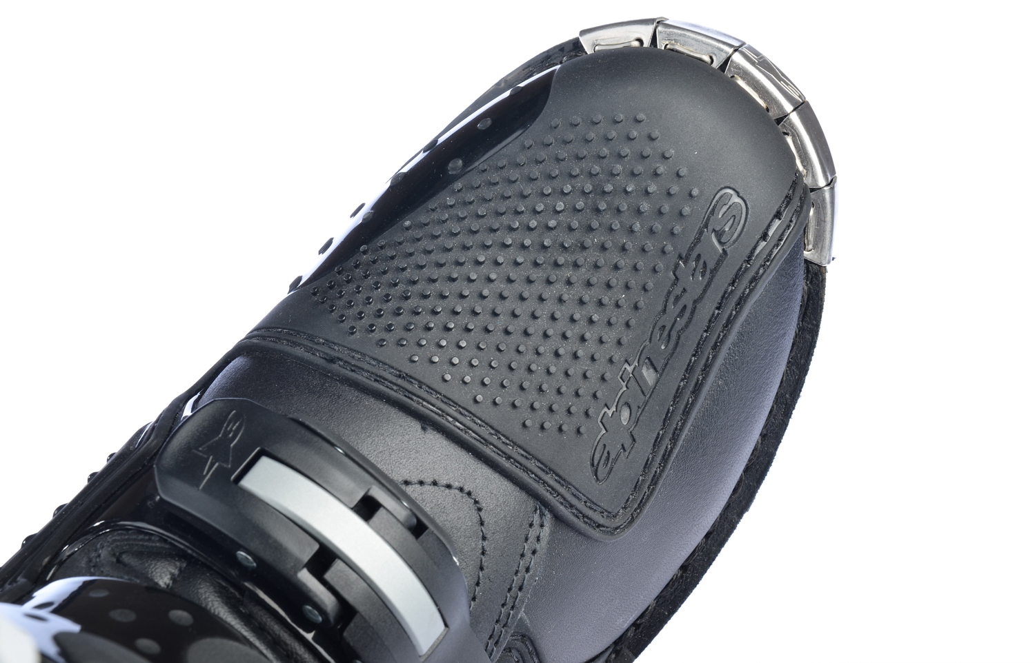 The Alpinestars Tech 3 AT (All Terrain) motocross boots are a sturdier version of the Tech 3 model, recommended for enduro riding in challenging conditions, whether it’s in the mountains, forests, swamps, or vast fields. These boots are a reliable and ergonomic model from a well-known brand, offered at a moderate price. They feature high stiffness for excellent torsional protection and an impressive level of protection, expressed in reinforced sole construction throughout the contour and a steel toe cap.