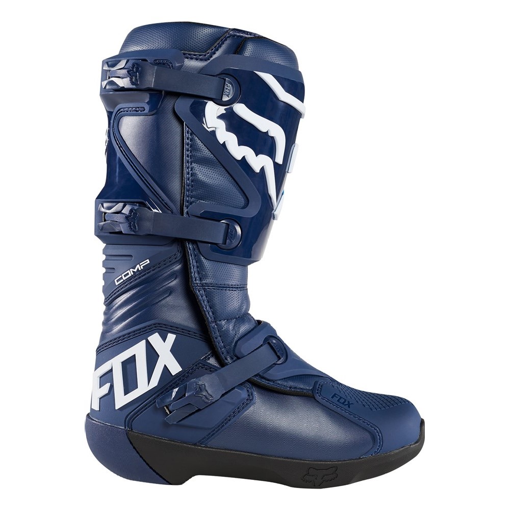 The Fox Comp Boots are the updated motocross boots for the year 2020, positioned as the junior model compared to the professional Fox Instinct. One notable change is in the closures – the fastenings from the Instinct ensure reliable fixation both at the bottom and the top of the leg.