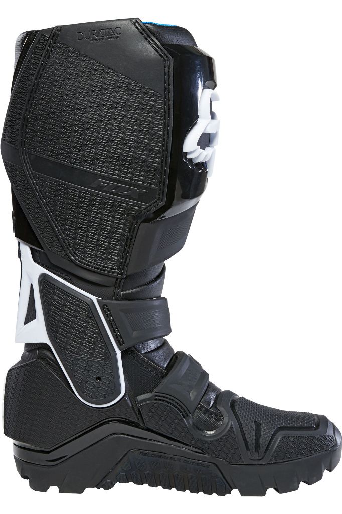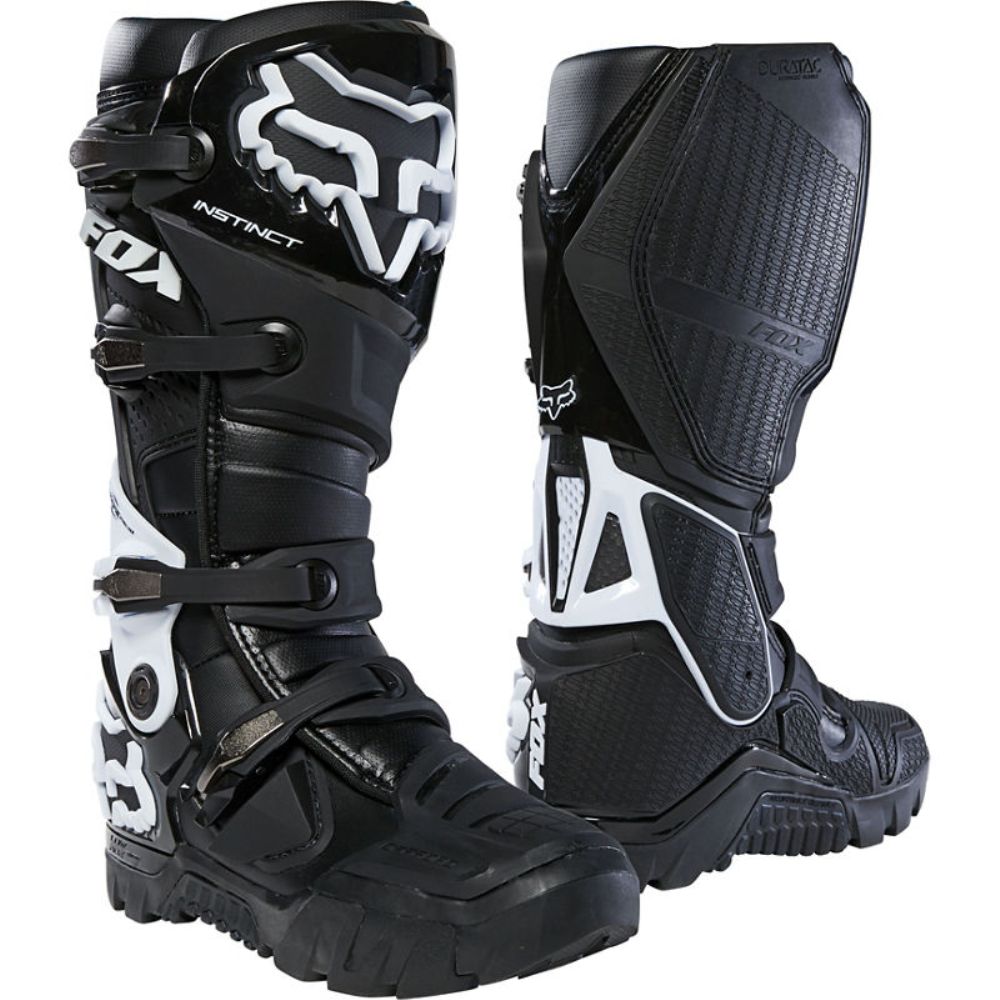 Fox Instinct X motocross boots in black are the off-road version of Fox Instinct’s top-of-the-line hinge motocross boots. They feature a more robust sole with a grippy tread.