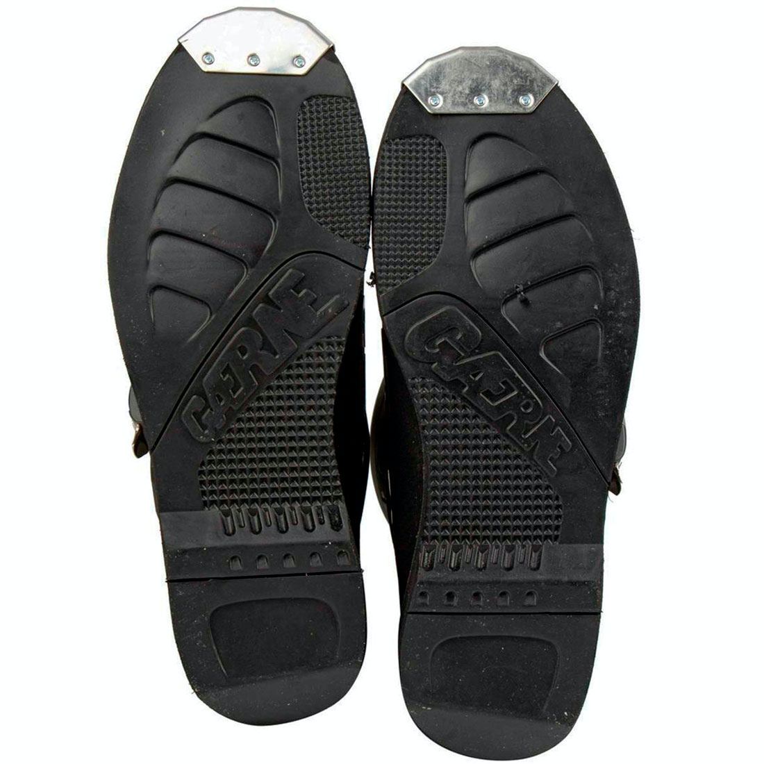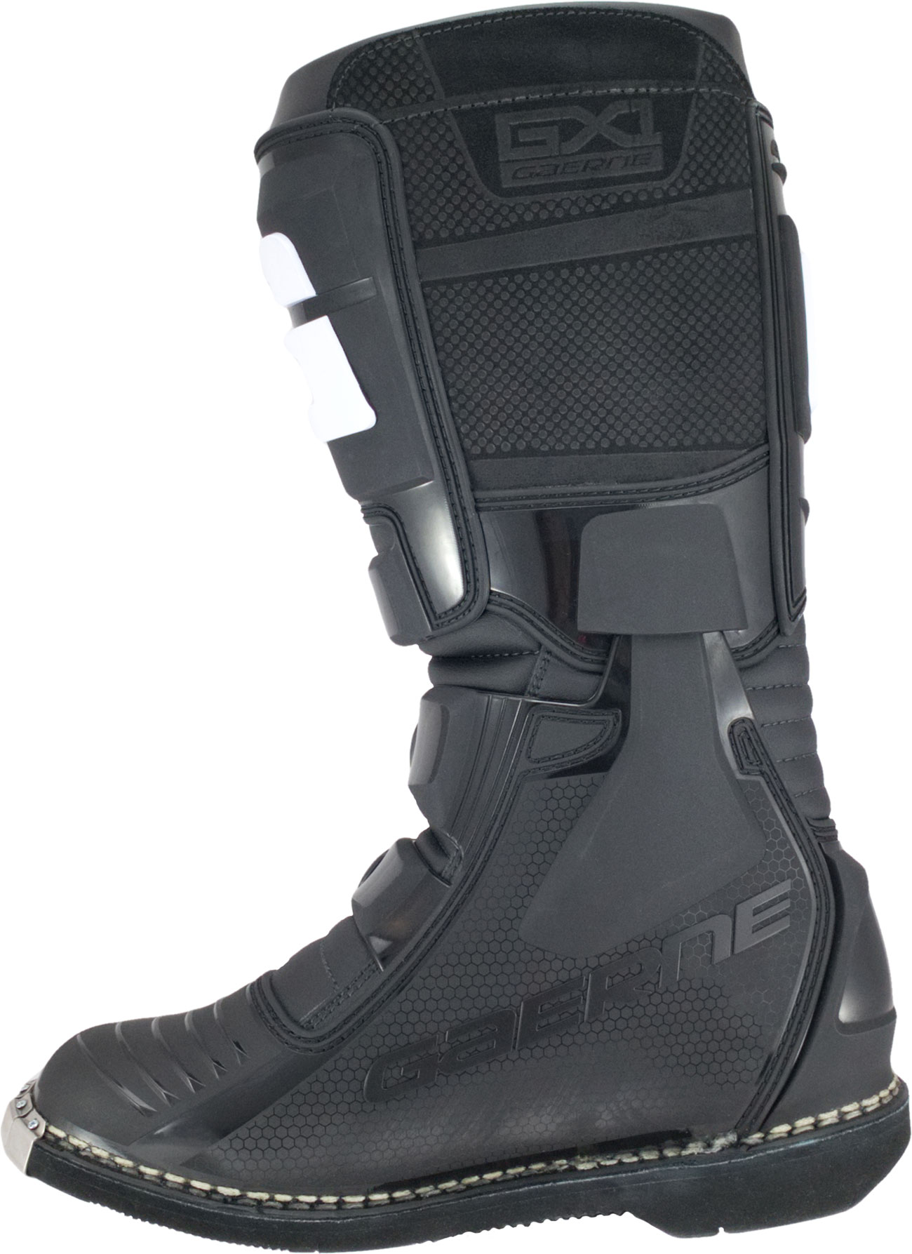 Gaerne GX-1 – Italian leather motorcycle boots of the highest quality. And although the factory description includes the phrase ‘entry-level’, they have everything necessary for serious motocross or trial riding. GX-1 Goodyear features shin protection made of multilayer plastic material, polyurethane toe protection, steel reinforcement in the toe, an internal thermal screen made of special rubber, polyurethane heel and ankle protection, and shock-absorbing anatomical insole. Microfiber inserts combined with a breathable antibacterial lining ensure foot comfort. The adjustable system of four aluminum interchangeable buckles allows for quick and secure fastening of the boot to the foot. The multi-component rubber sole with interchangeable elements has an anatomical shape and is reinforced with a steel plate.
