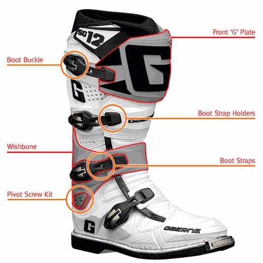 The SG-12 is rightfully considered the pinnacle of technology in the world of motocross boot manufacturing. It is the market leader, recognized as the best model in various nominations by leading motocross publications, including TRANSWORLD MOTOCROSS MAGAZINE. The patented two-stage protection system with movable protective plates allows for maximum natural foot mobility while providing protection against impacts and unwanted stresses during landings. The front protective plate, made of extremely durable thermoplastic, has an adjustment system and allows for more precise fitting of the boot or accommodation of larger knee braces using 3 bolts. Features the signature GAERNE sole with an updated design.