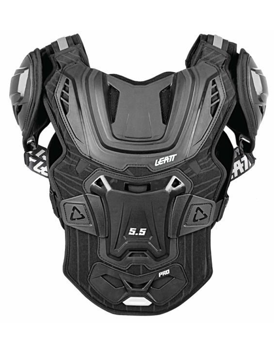 The Leatt 5.5 Pro is a robust chest protector designed by Leatt to safeguard the chest, back, and shoulders, specifically engineered for use with the Leatt Brace neck protection system.