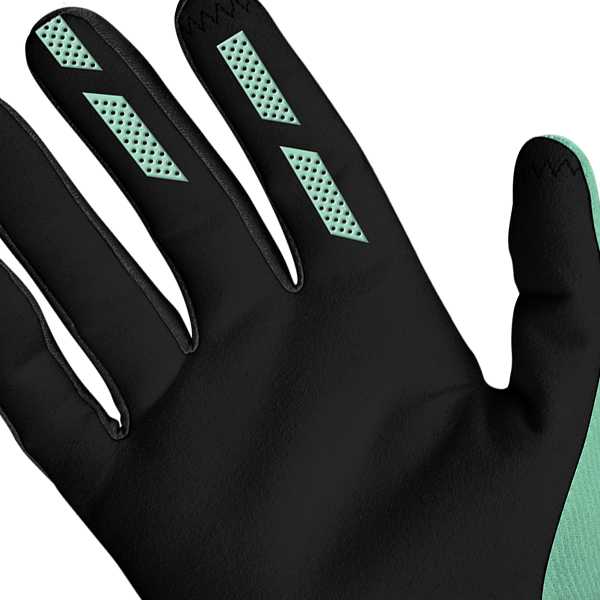 The Annex gloves are simple motocross gloves made from several low-density stretch materials. The palm is made of single-layer Clarino material.